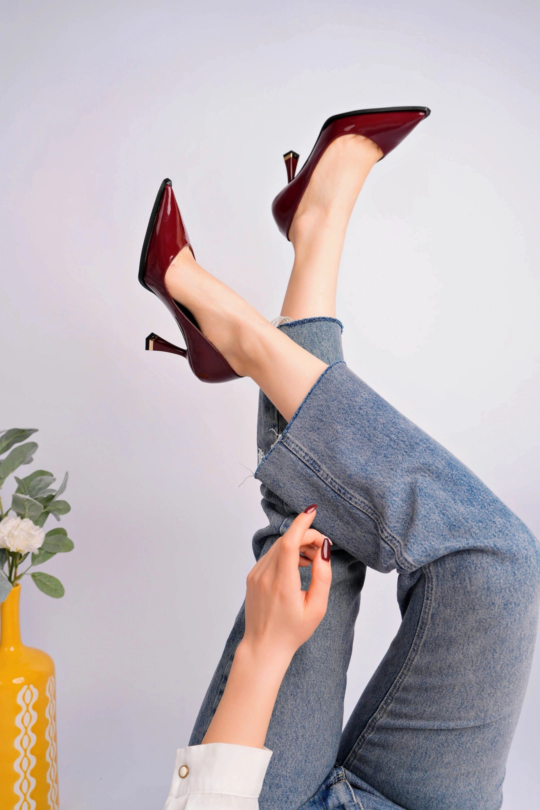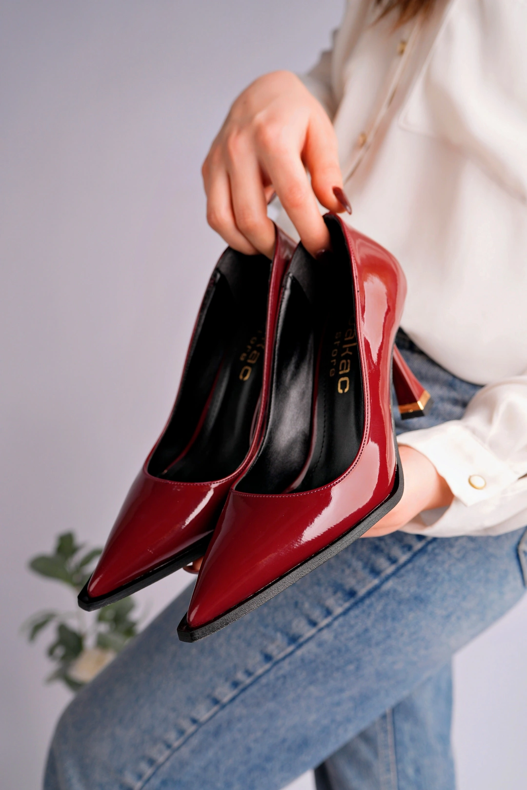 Kadın Bordo Rugan Sivri Burun Şık Topuklu Ayakkabı