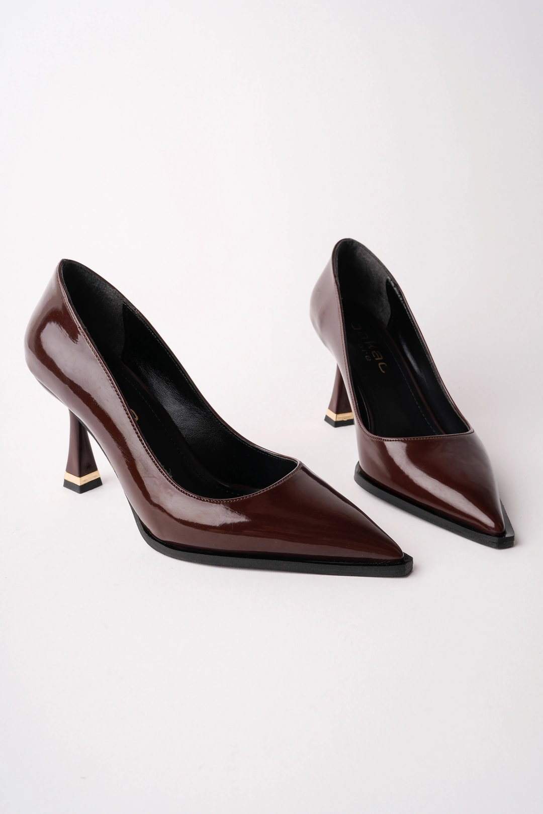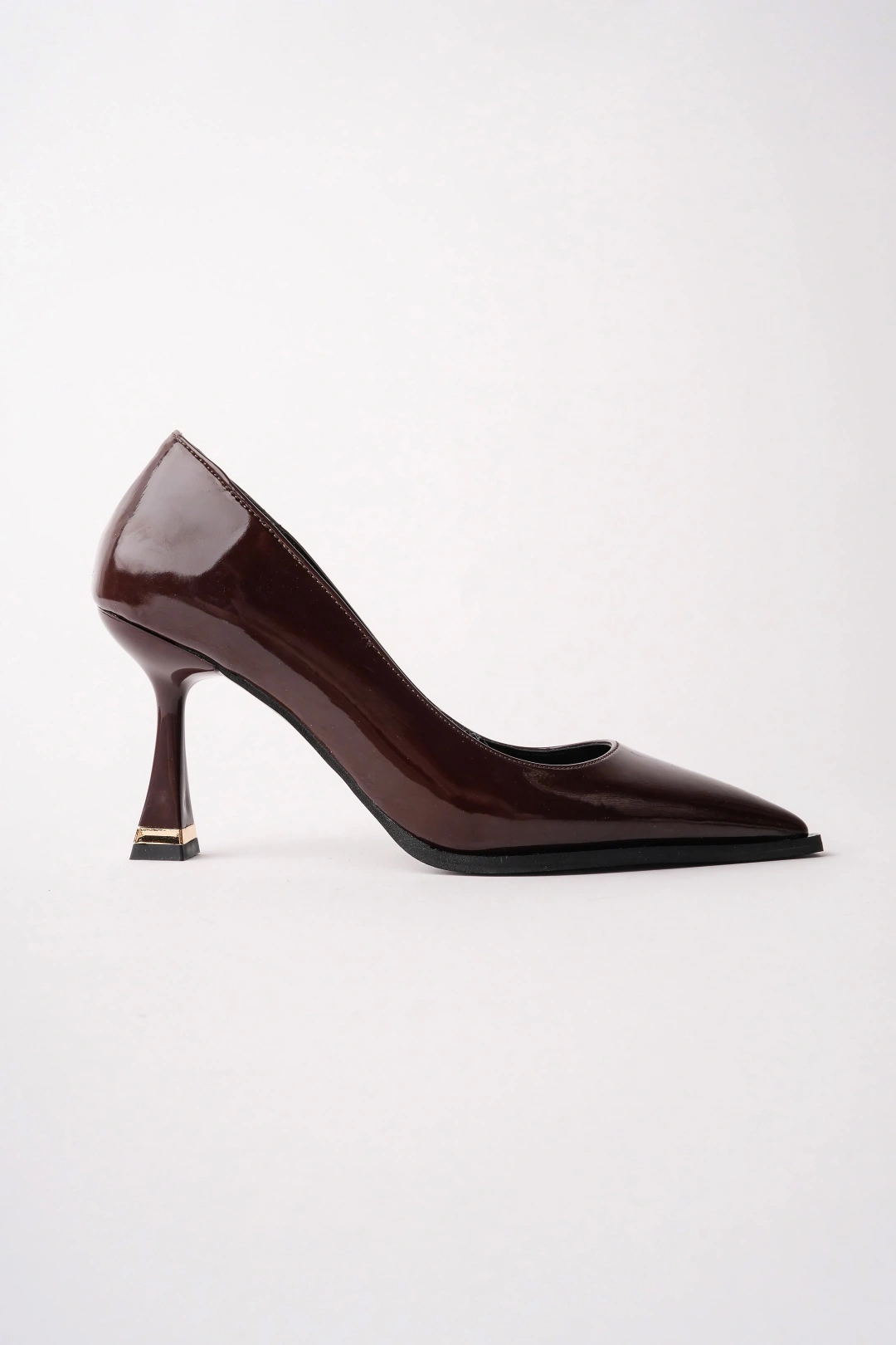 Kadın Kahverengi Rugan Sivri Burun Şık Topuklu Ayakkabı