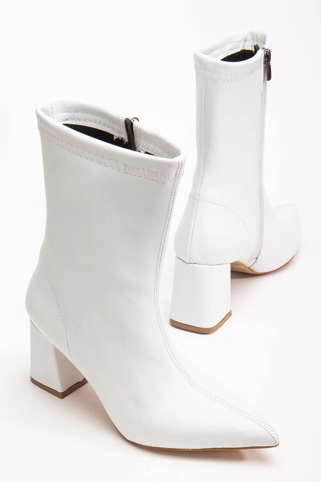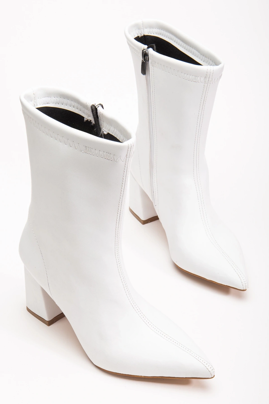 Venessa Kadın Beyaz Sivri Burun Orta Boy Topuklu Bot