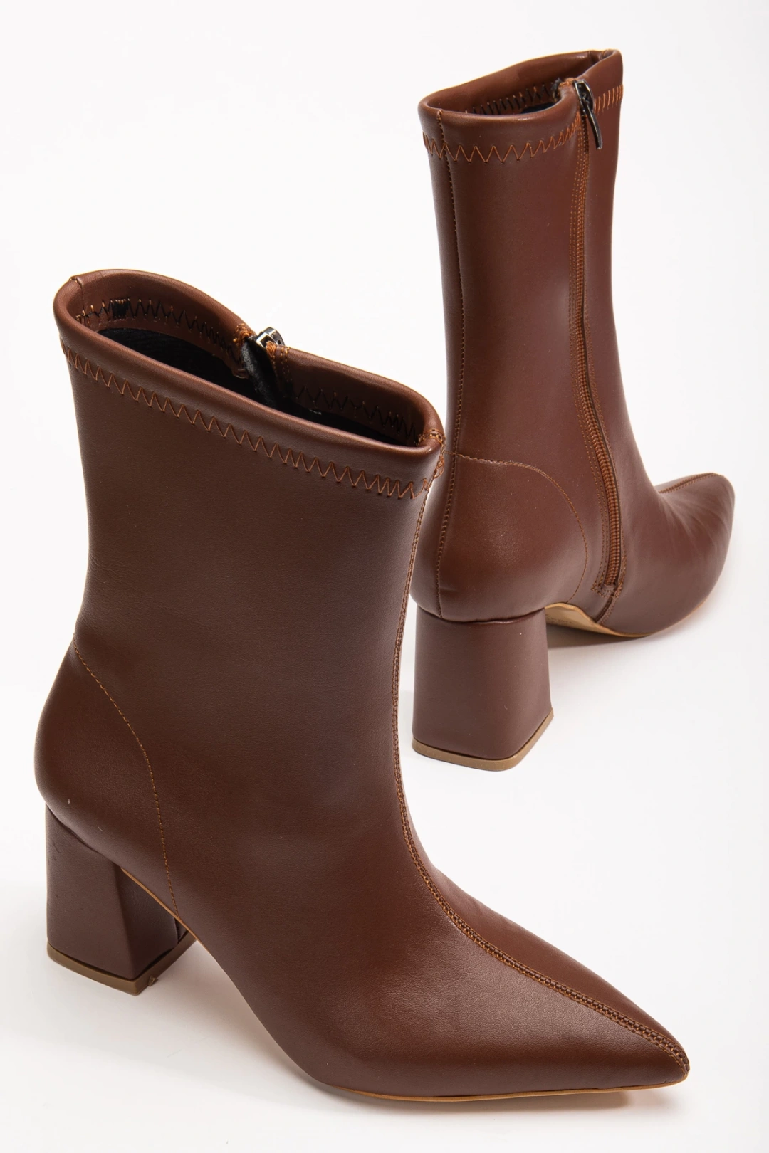 Venessa Kadın Taba Sivri Burun Orta Boy Topuklu Bot